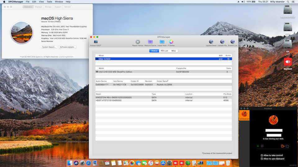 Success Hackintosh macOS High Sierra 10.13.6 Build 17G65 at MSI GP62 7RD Leopard