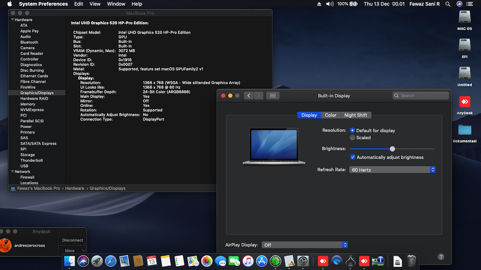 Success Hackintosh macOS Mojave 10.14.2 Build 18C54 at HP Pavilion 14-AB130TX